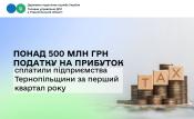 Понад пів мільярда гривень податку на прибуток сплатили підприємства Тернопільщини за перший квартал року