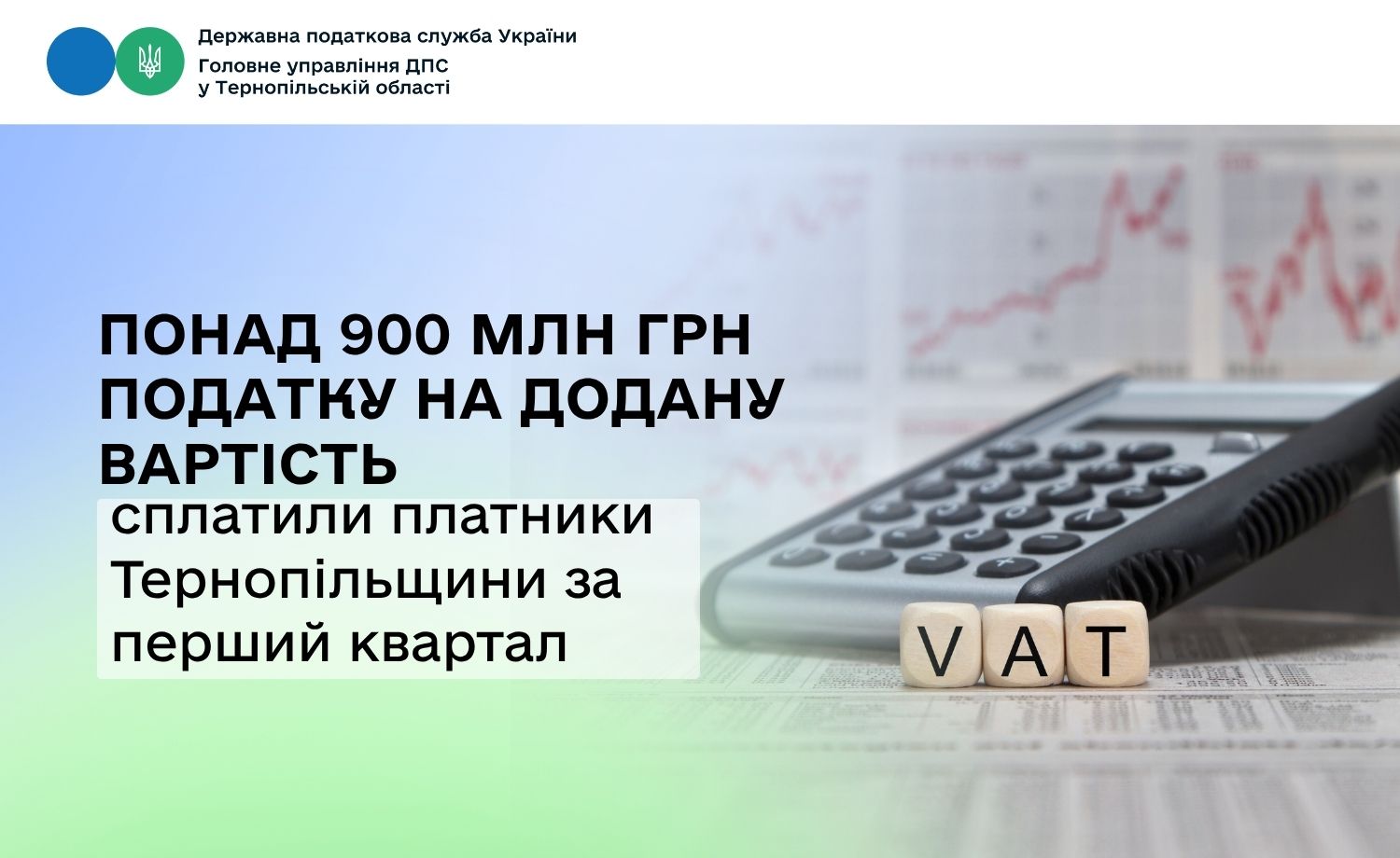 Понад 900 млн грн ПДВ сплатили платники Тернопільщини за перший квартал