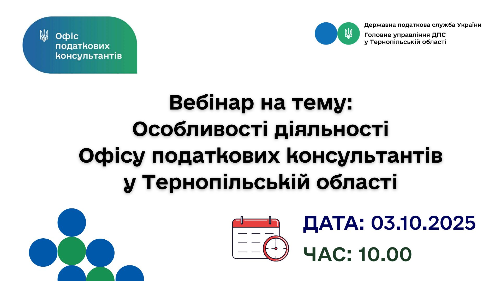 - Про особливості діяльності Офісу податкових консультантів у Тернопільській області йтиметься на вебінарі