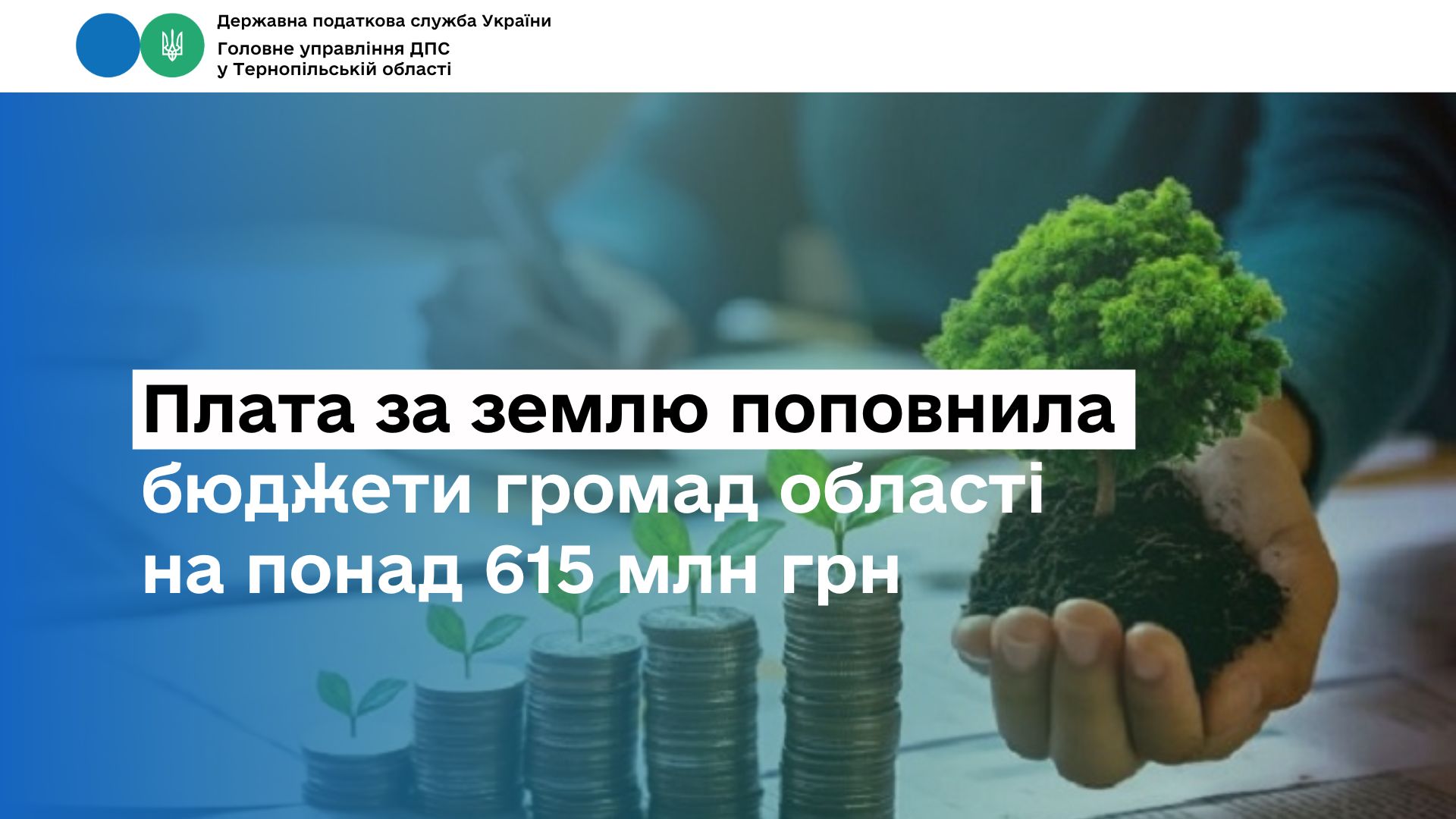 Плата за землю поповнила бюджети громад області на понад 615 мільйонів гривень