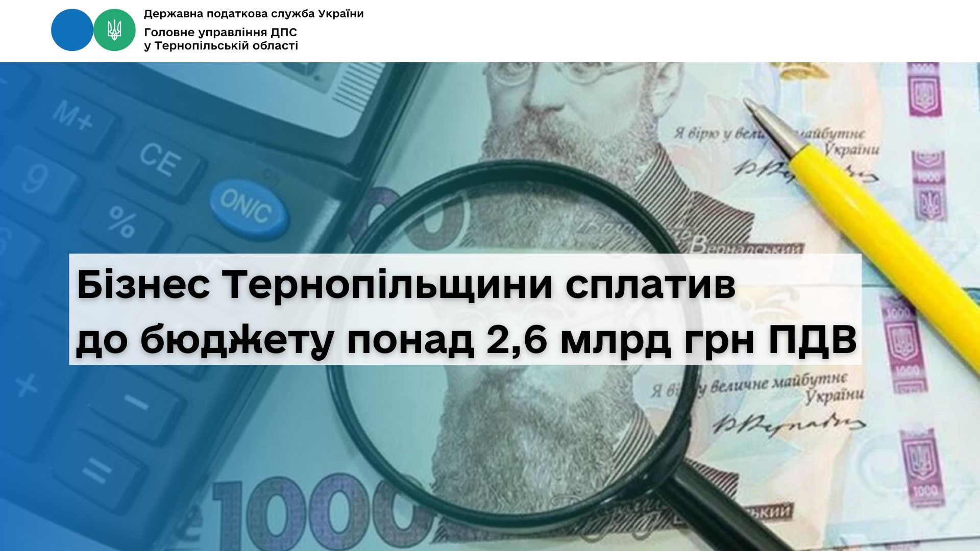 Протягом дев’яти місяців цього року суб’єкти господарювання Тернопільської області перерахували до державного бюджету 2 мільярди 604,9 мільйона гривень податку на додану вартість (ПДВ). Це на майже 630 мільйонів гривень, або на 32 відсотки більше, ніж за аналогічний період минулого року.