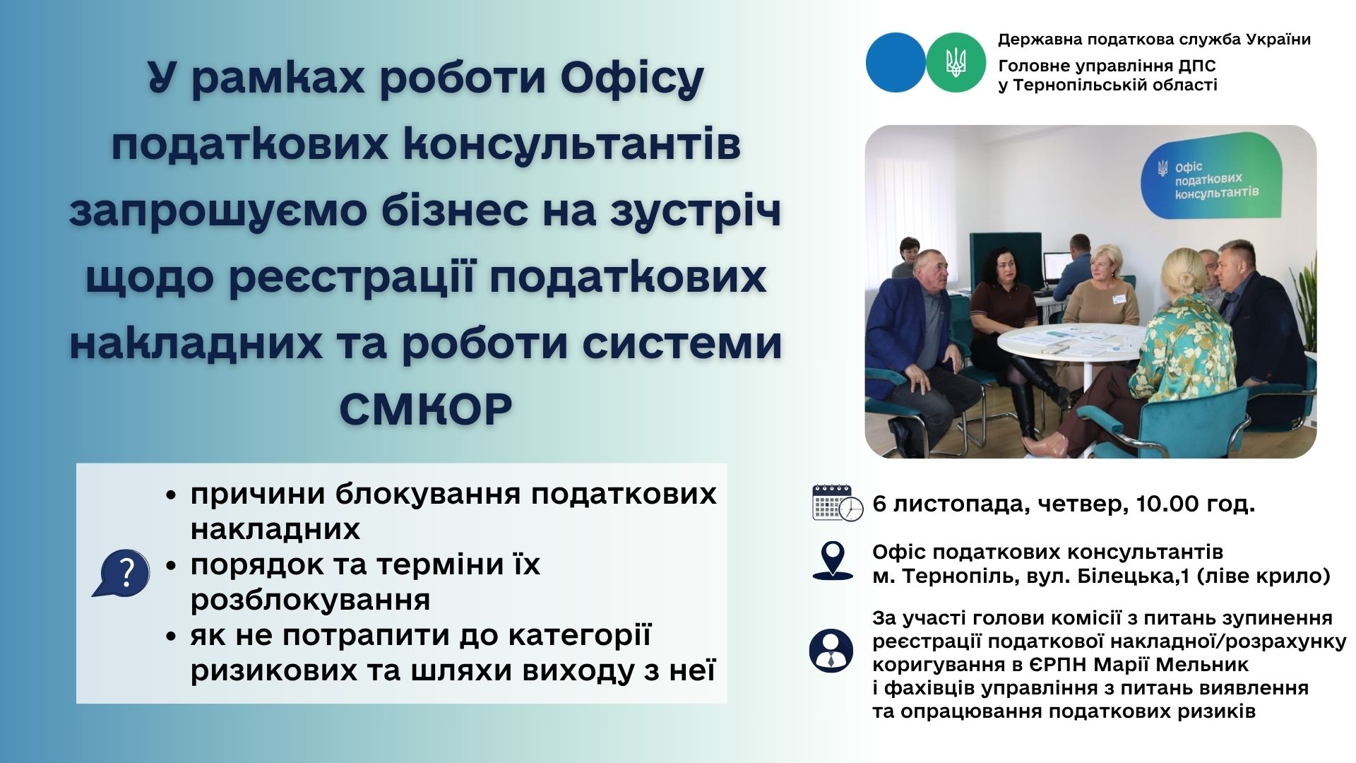 Відбудеться зустріч із бізнесом з питань реєстрації податкових накладних та роботи системи СМКОР