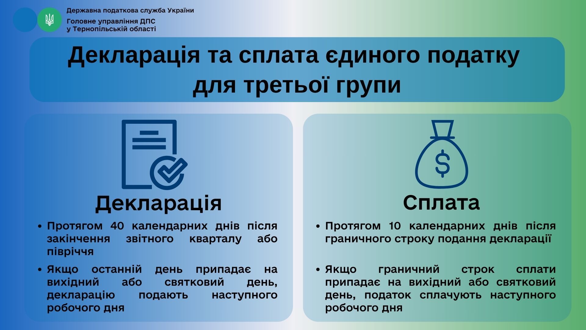 Єдиний податок для третьої групи: терміни подання декларації та сплати