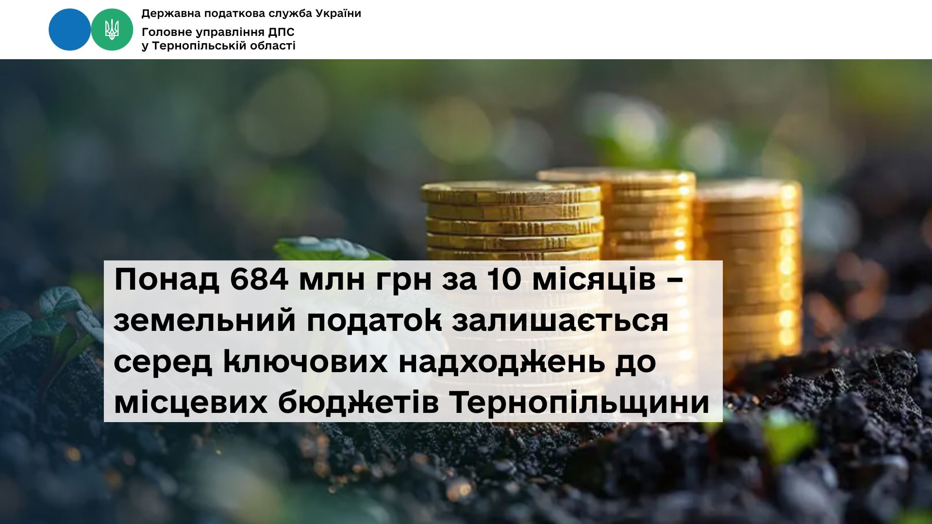 Понад 684 млн грн за 10 місяців – земельний податок залишається серед ключових надходжень до місцевих бюджетів Тернопільщини