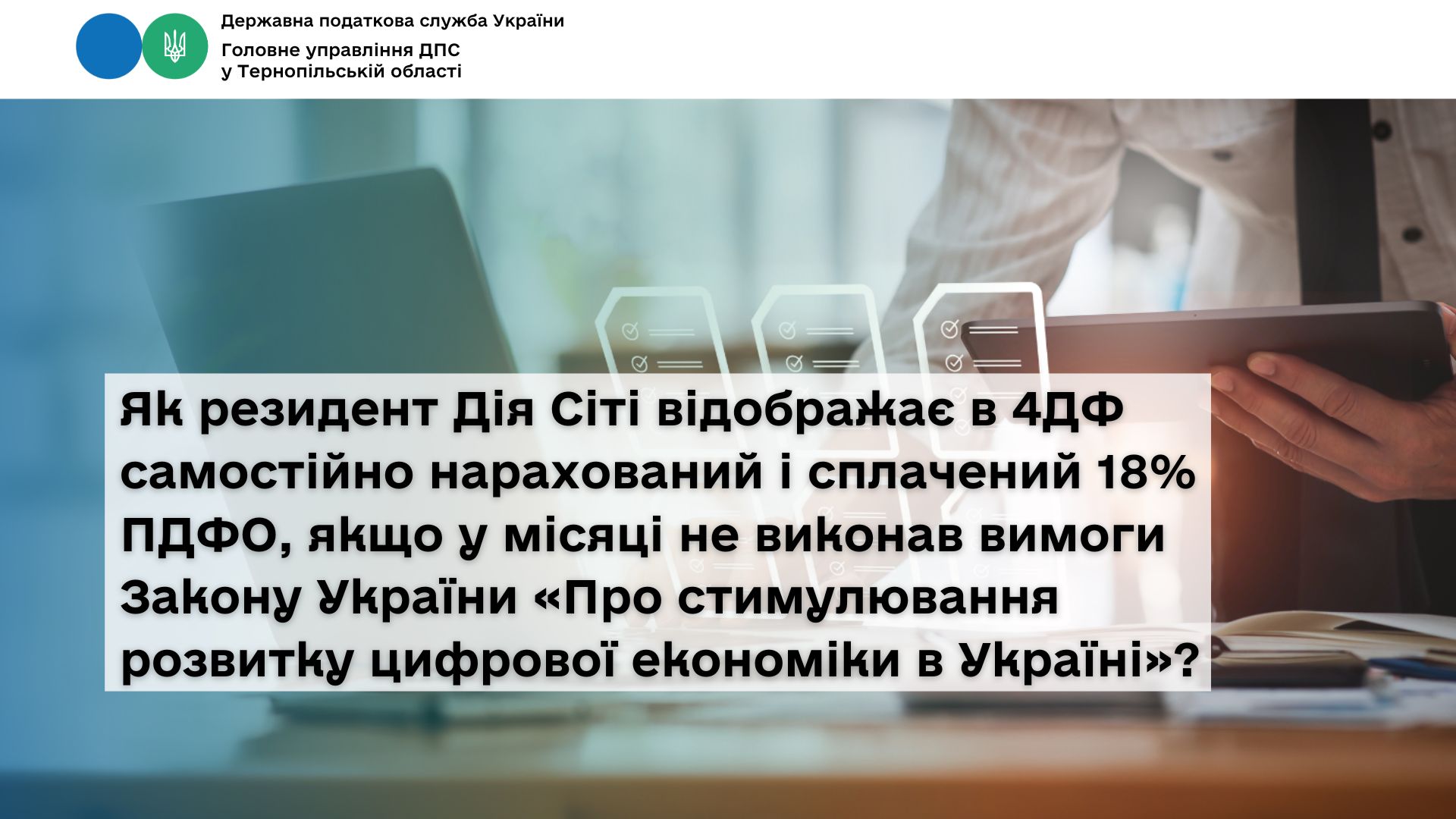 Згідно з п.п. 170.14¹.5 ПКУ, якщо у певному місяці резидент Дія Сіті не відповідає вимогам, визначеним п. 2 і 3 ч. 1 ст. 5 Закону № 1667, він повинен самостійно донарахувати податок за ставкою 18% щодо доходів, визначених у підпунктах «а» і «б». Цей податок сплачується за рахунок резидента Дія Сіті (за мінусом уже утриманого 5 %), і така сплачена сума не включається до доходу спеціалістів.