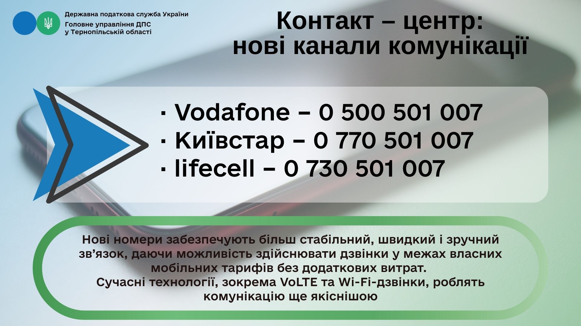 Для зручності громадян та бізнесу Контакт-центр ДПС працює з номерами мобільних операторів: