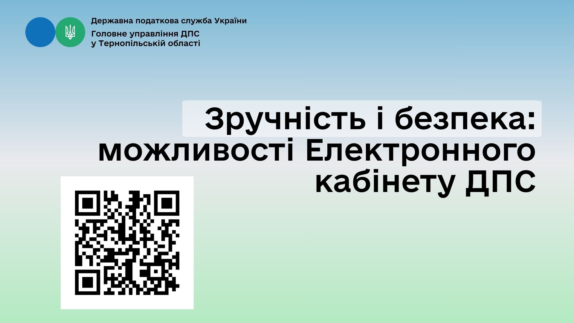 Головне управління ДПС у Тернопільській області інформує, що для зручної та швидкої взаємодії з податковою службою платники податків можуть користуватися засобами електронного зв’язку, зокрема Електронним кабінетом (https://cabinet.tax.gov.ua/).