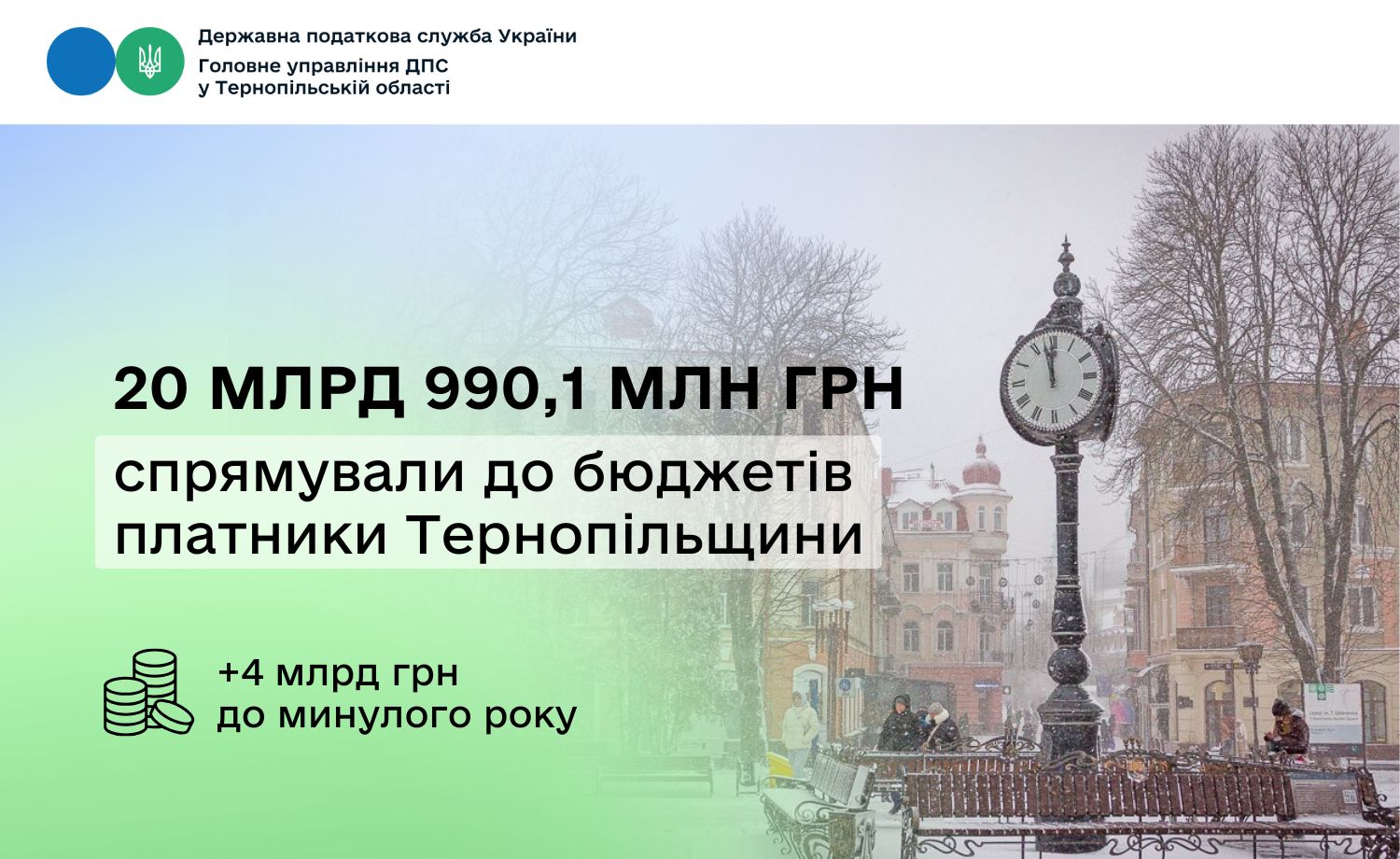 Упродовж 2025 року платники області попри складні економічні умови забезпечили надходження податкових платежів до бюджетів усіх рівнів у сумі 20 млрд 990,1 млн гривень.