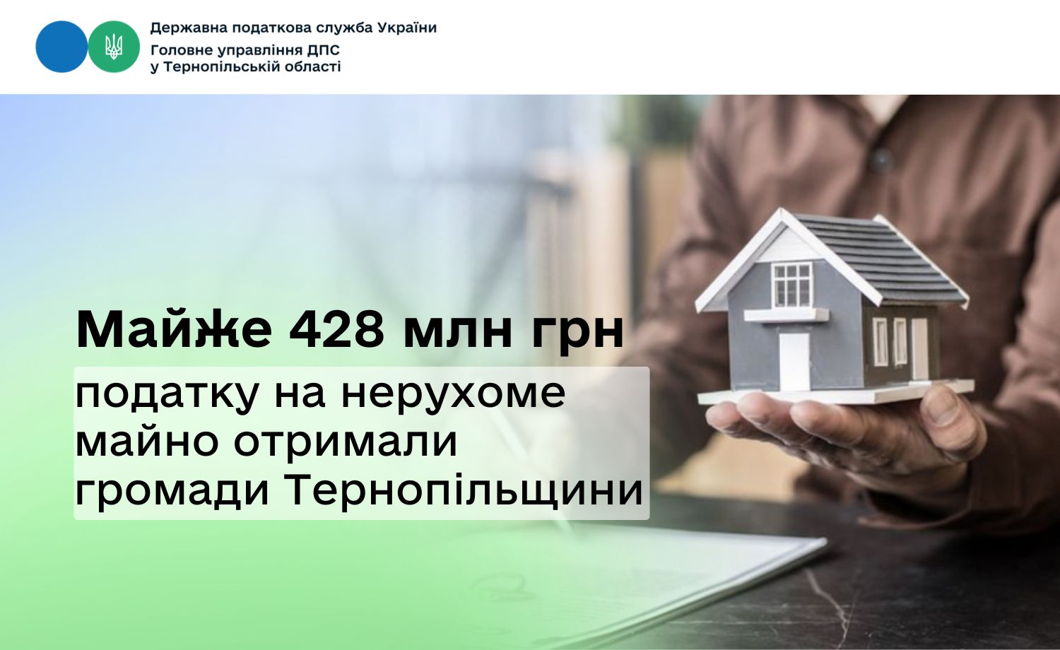 Упродовж 2025 року громади Тернопільської області отримали 427,8 млн грн податку на нерухоме майно. Фактичні надходження перевищили планові показники на 25,5 млн гривень. Порівняно з 2024 роком обсяг сплаченого податку зріс на 54,2 млн гривень.