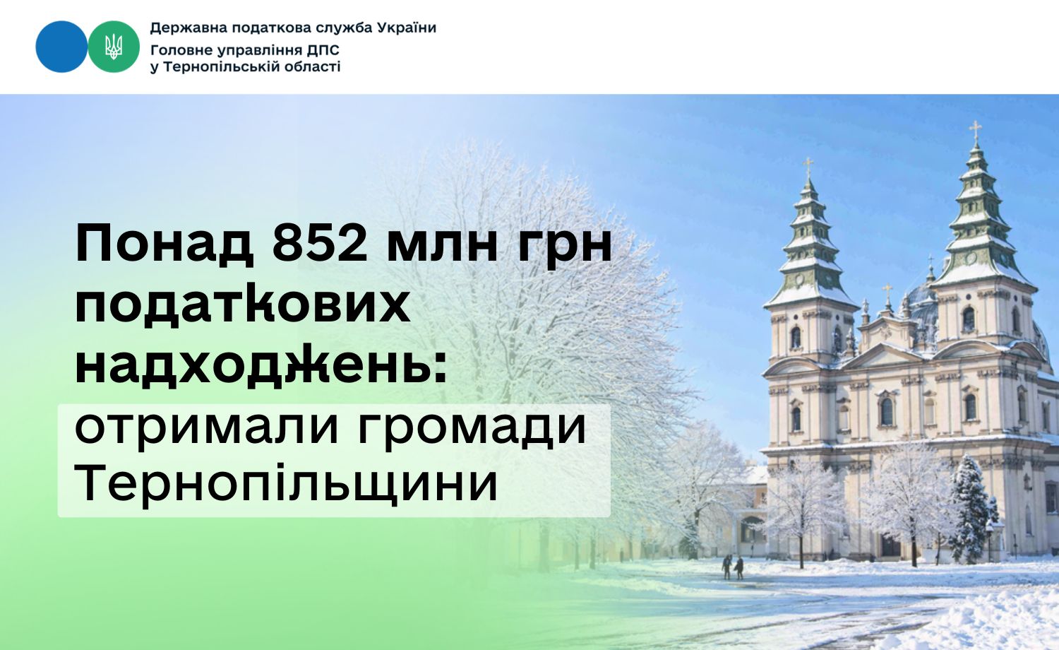 Громади Тернопільщини отримали понад 852 млн грн податкових надходжень