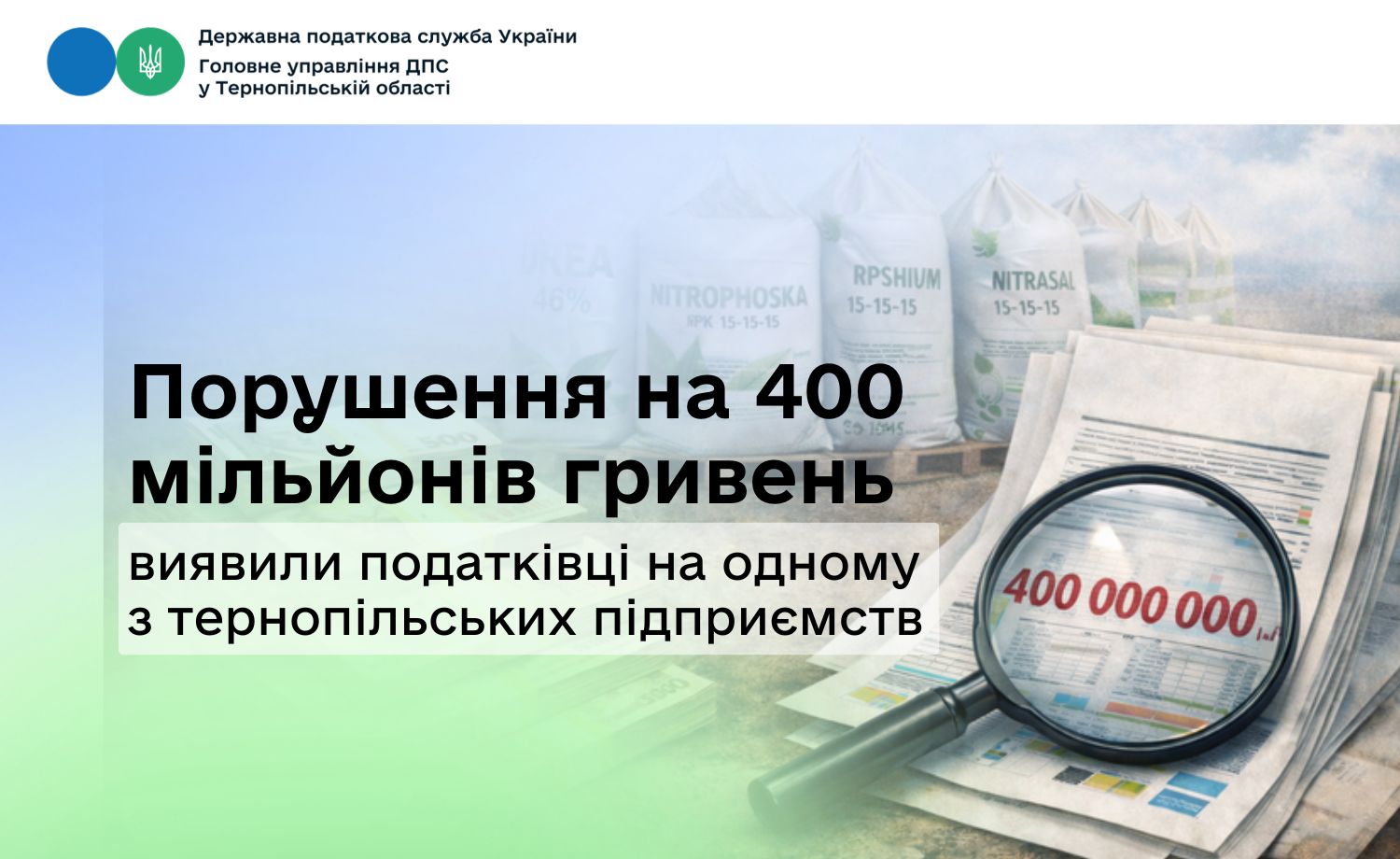Понад 400 мільйонів гривень порушень податкового законодавства – такий результат планової документальної перевірки підприємства з оптової торгівлі хімічними продуктами, проведеної фахівцями Головного управління ДПС у Тернопільській області.