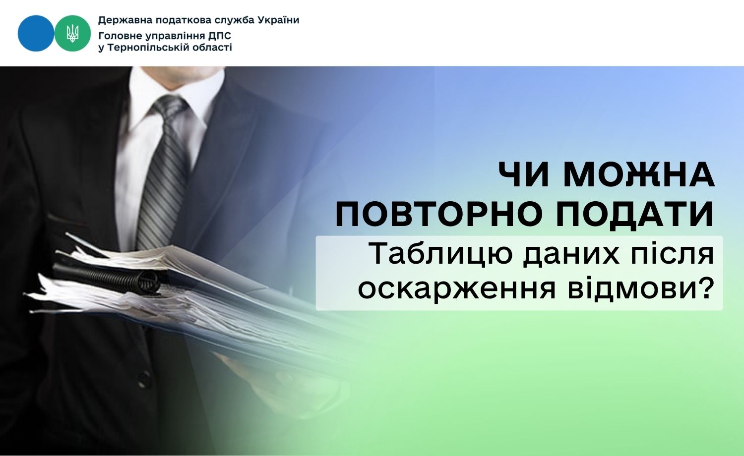 Якщо Таблицю не врахували, платник може підготувати нову Таблицю, подати її повторно, і вона буде розглядатися вже як новий документ із власним реєстраційним номером.