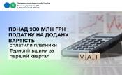 Податок на додану вартість залишається ключовим джерелом наповнення державного бюджету. За перший квартал цього року суб’єкти господарювання Тернопільської області сплатили до держбюджету 908,3 млн грн ПДВ. Це на 23,3 млн грн більше, ніж за 3 місяці минулого року.