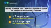 За 9 місяців цього року платники податків Тернопільської області спрямували до Зведеного бюджету України 15 млрд 104,7 млн гривень. Це майже на 3 млрд грн або 24% більше, ніж за аналогічний період минулого року. Перевиконання планових показників становить понад 1,2 млрд гривень.