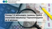 Упродовж січня-вересня цього року платники податків Тернопільської області перерахували до Зведеного бюджету України 7 мільярдів 281 мільйон гривень податку на доходи фізичних осіб (ПДФО). Це на 751 мільйон гривень більше, ніж за відповідний період минулого року.
