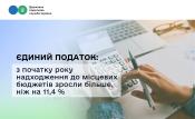 Єдиний податок: з початку року надходження до місцевих бюджетів зросли більше, ніж на 11,4 %
