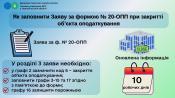 Якщо об’єкт оподаткування закривається (у тому числі через припинення діяльності підприємства чи підприємця), потрібно знову подати форму № 20-ОПП із оновленою інформацією.
