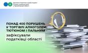 Понад 400 порушень у торгівлі алкоголем, тютюном і пальним зафіксували податківці області