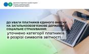 До уваги платників єдиного внеску на загальнообов’язкове державне соціальне страхування: уточнено категорії платників в розрізі символів звітності
