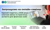 Головне управління ДПС у Тернопільській області у межах роботи регіональної платформи «Діалог влади та бізнесу» запрошує на чергову онлайн-зустріч на тему: «Єдиний податок у 2026 році: ключові зміни та практичні аспекти для фізичних осіб - підприємців».