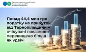 За перший місяць цього року підприємства Тернопільщини поповнили зведений бюджет на 44,4 млн грн податку на прибуток. Порівняно із січнем минулого року надходження зросли на 25,4 млн грн або 133,6%. Очікувані показники перевищено більш ніж удвічі – на 24,8 млн гривень.